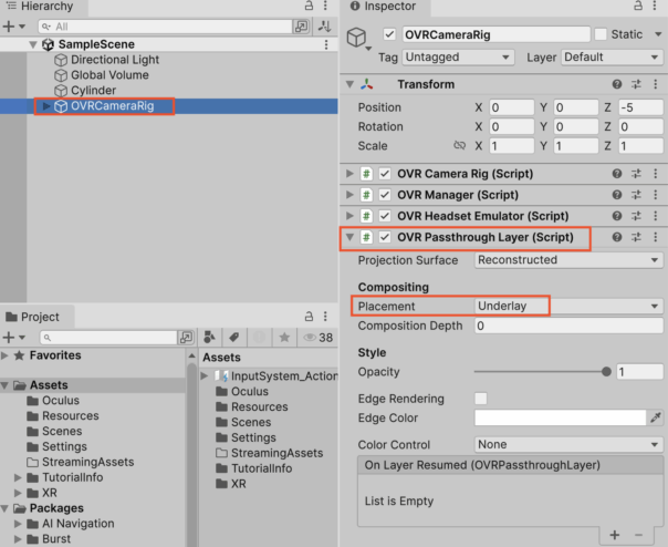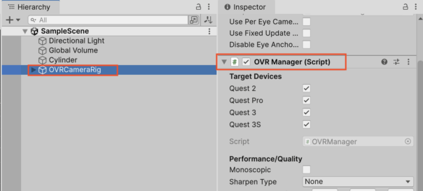 ・「Main Camera」を削除して、「OVRCameraRig」を追加