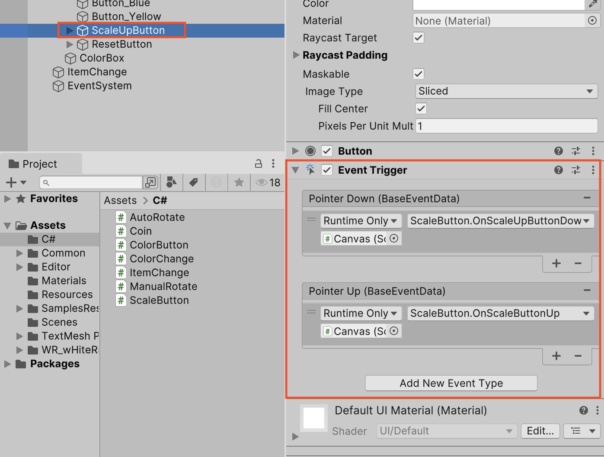 ・イベントタイプで「Pointer Down」と「Pointer Up」の2つを設定