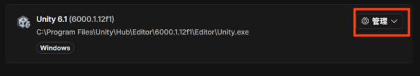 ・インストール画面で「使用するUnityバージョン」の「歯車」をクリック