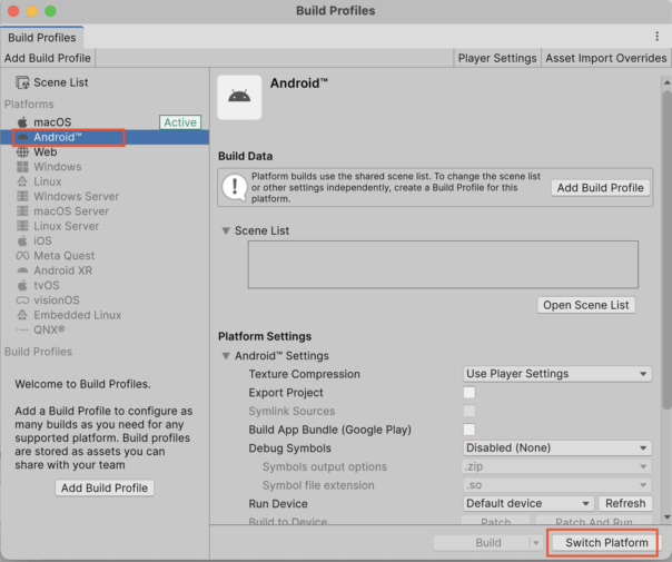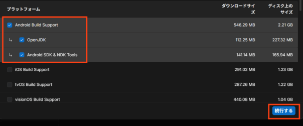 *Meta Questは「Androidの開発環境」を「Unityに追加」する必要があります。