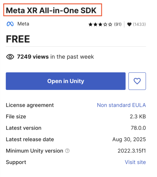 ・Unityのアセットストアより「Meta XR All-in-One SDK」をダウンロード