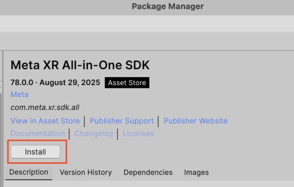 (Meta XR All-in-One SDKのダウンロード&インポート)