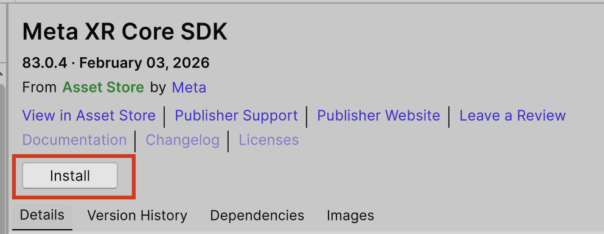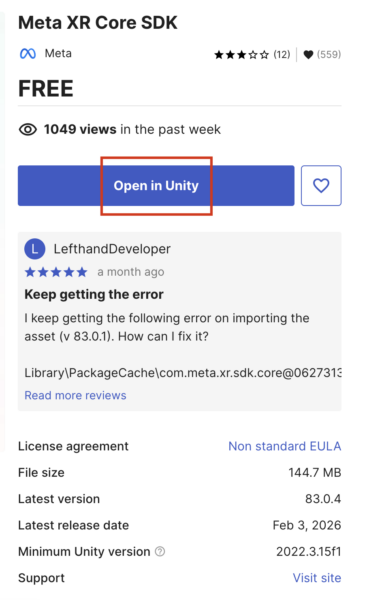・Unityのアセットストアより「Meta XR Core SDK」をダウンロード