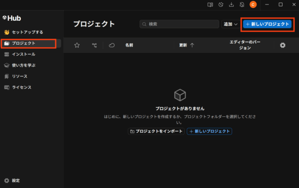 ・この画面が立ち上がったら、Unityの起動は成功です。