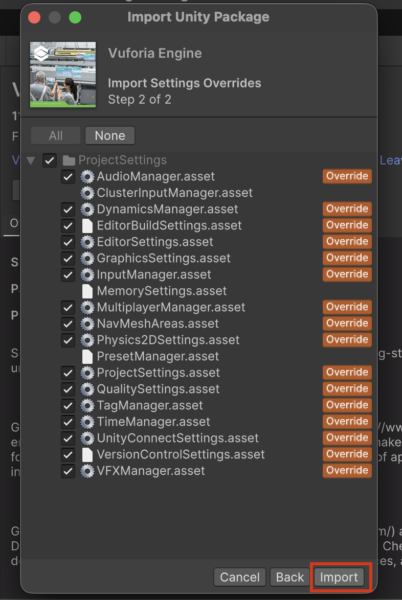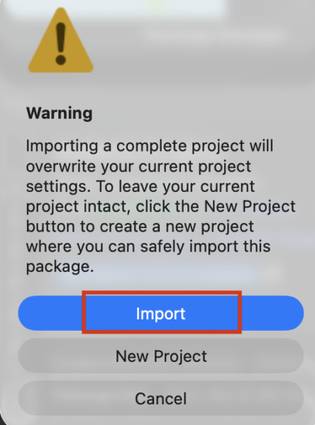 - 警告の中身を読んで理解した上で「Import」をクリック