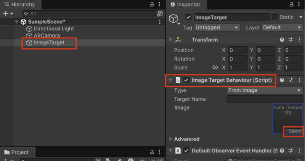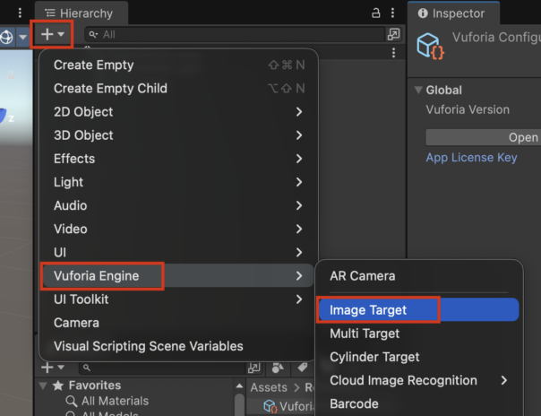 - 「+」・・・>「Vuforia Engine」・・・>「Image Target」をクリック