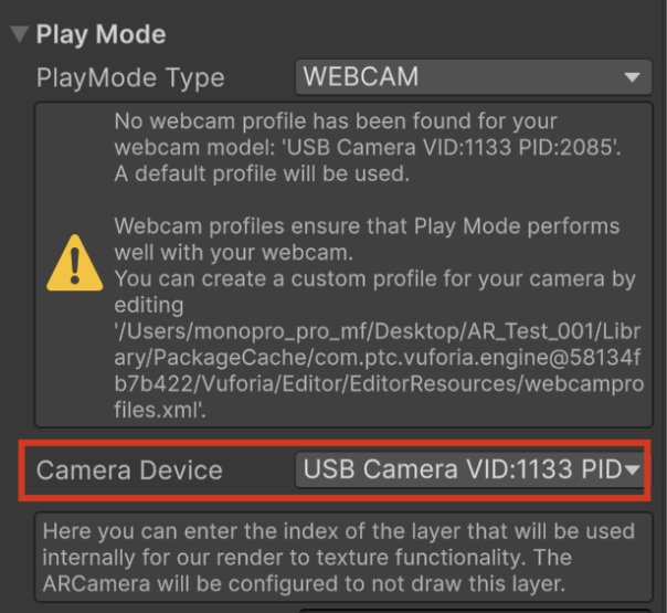 - 「Camera Devide」を自分が接続したWebカメラに変更
